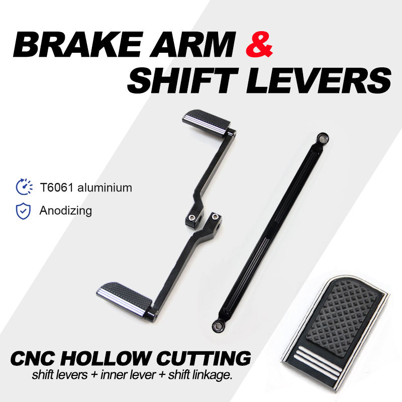 The kit includes:Front + rear + shift + brake + guard bar foot pedal
