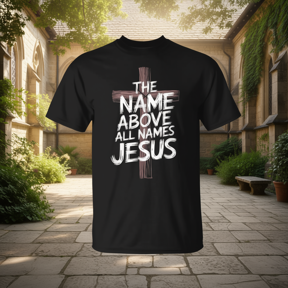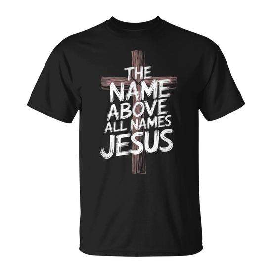 T-shirt chrétien noir pour hommes avec inscription « Le nom au-dessus de tous les noms Jésus »