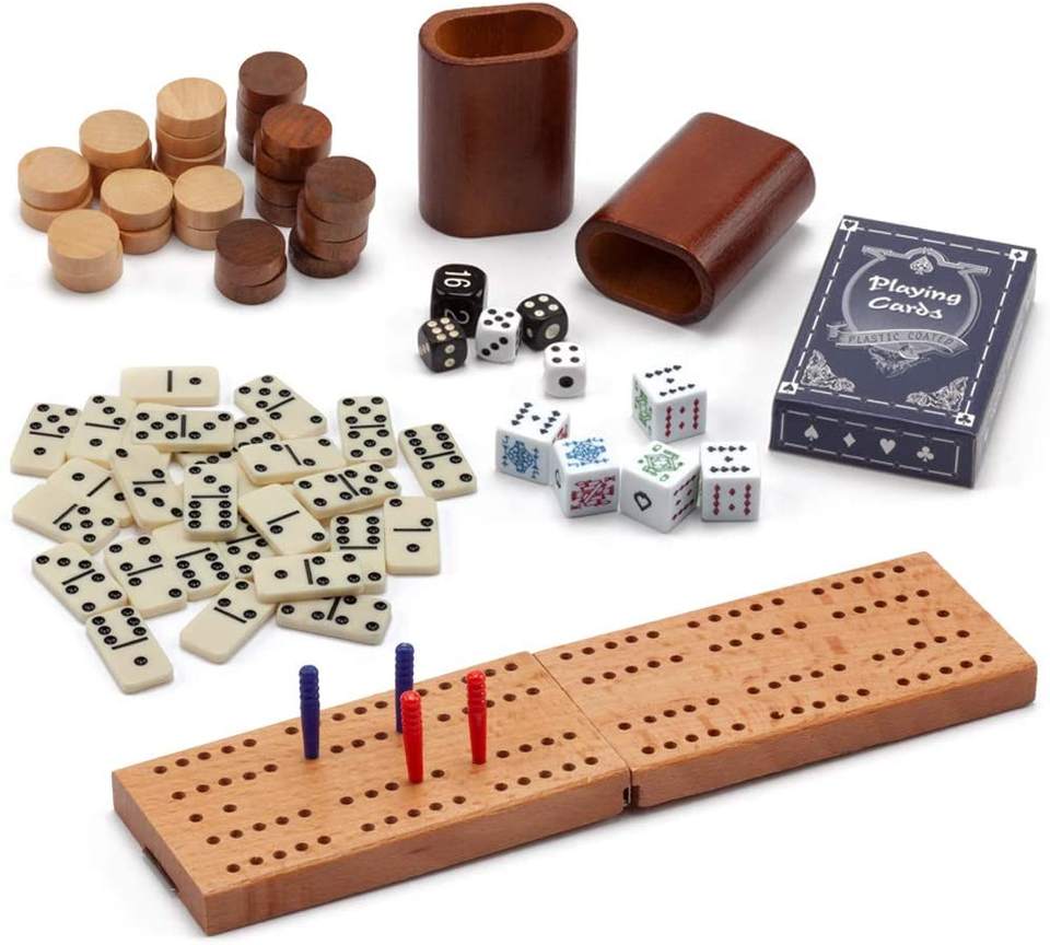 Le Nouveau Jeu 7 en 1 avec Échecs, Jeu de Dames, Jeu de Dames (backgammon), Dominos, Poker, Dés, Cribbage
