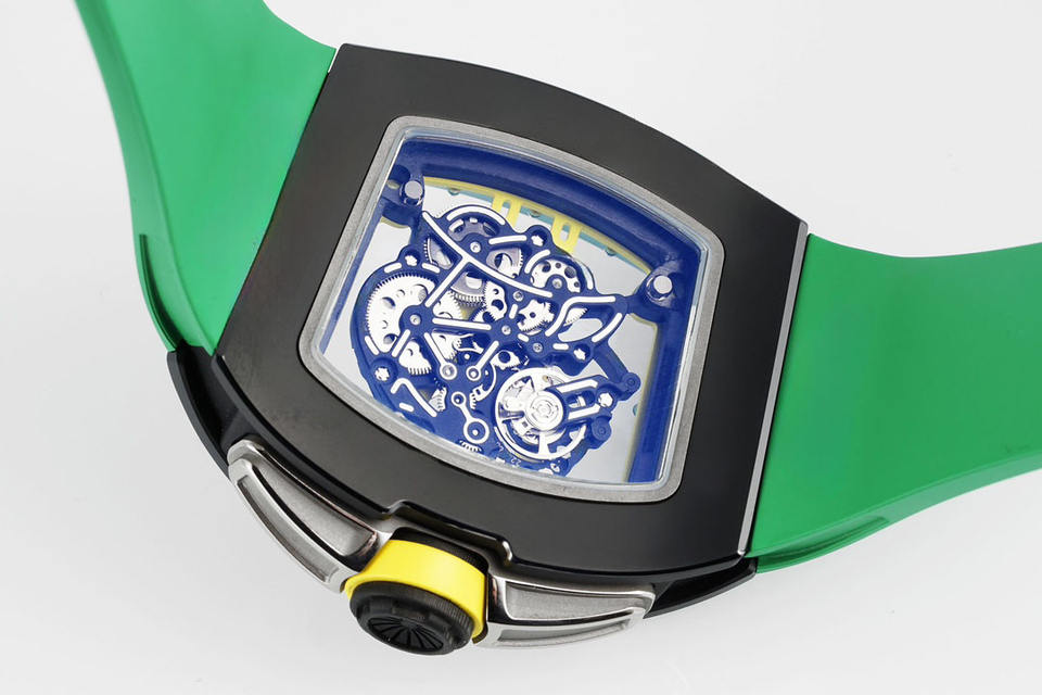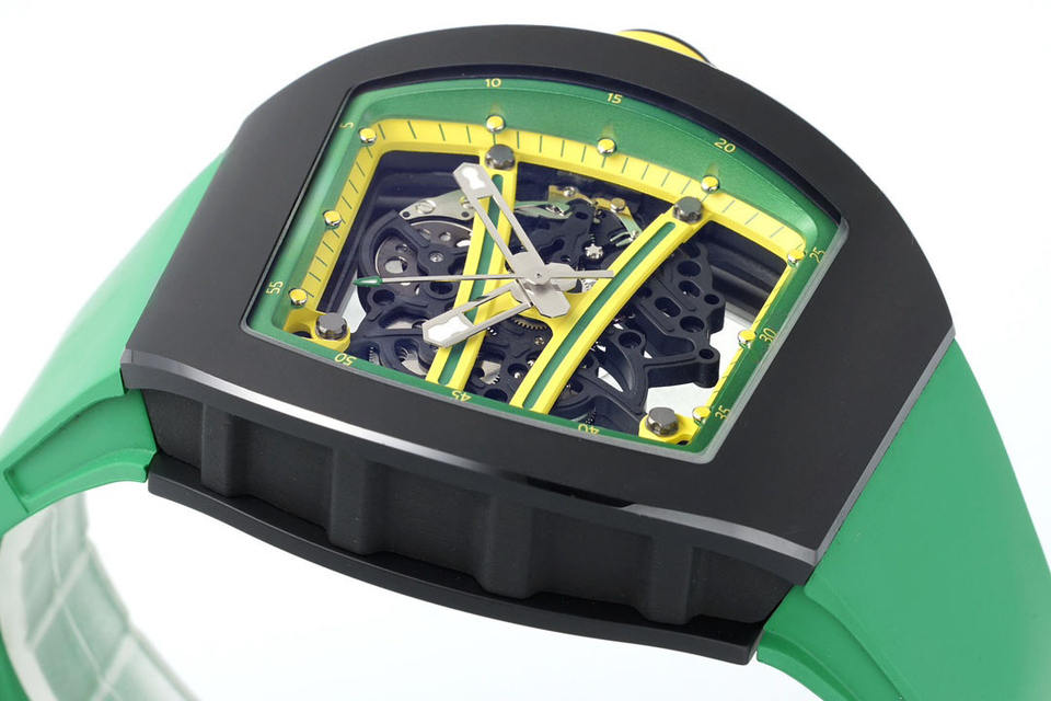 La conception à cadran ouvert et creux vous permet d'observer le mouvement du mécanisme. Montre mécanique de grande taille en fibre de carbone.