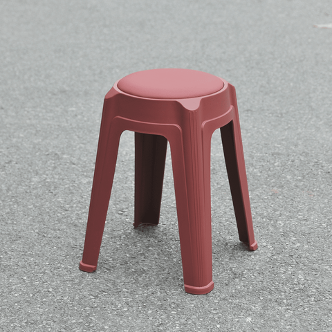 Le tabouret en plastique rembourré de couleur rouge - La chaise de jardin confortable, compacte et élégante