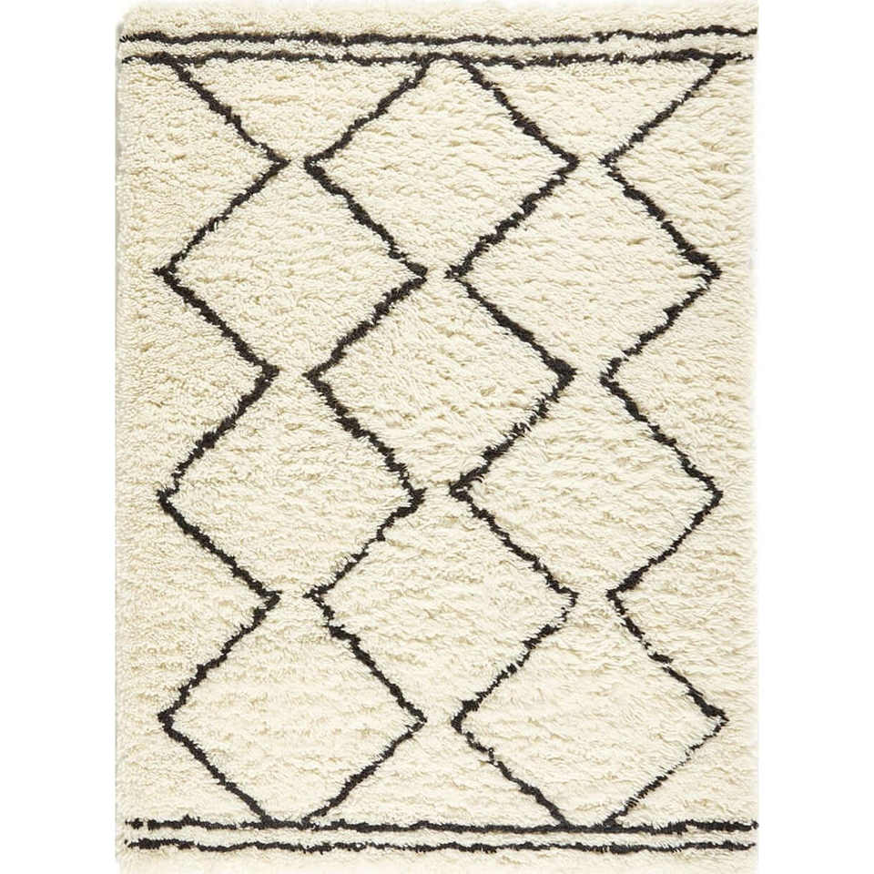 Ensemble de tapis berbère en laine crème/noir, tapis moelleux, 80x150cm