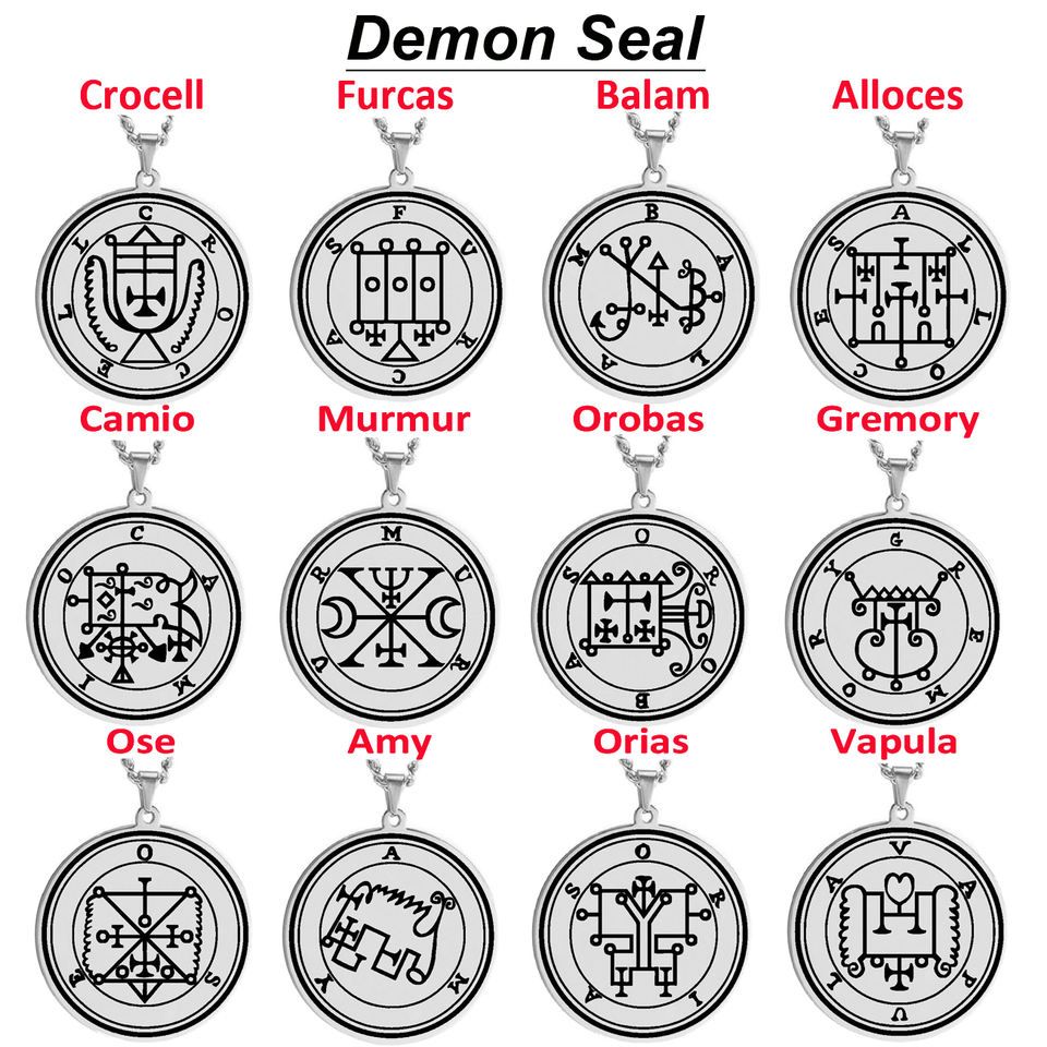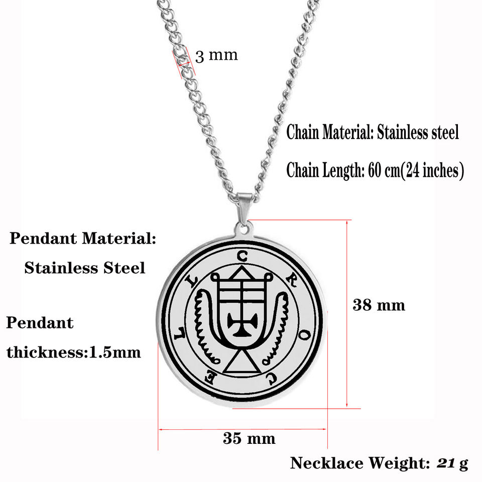 The Seals of the 72 Spirits the Lesser Key of Solomon King Asmoday Demon Origins Goetia 49-60 Stainless Steel Pendant Necklace