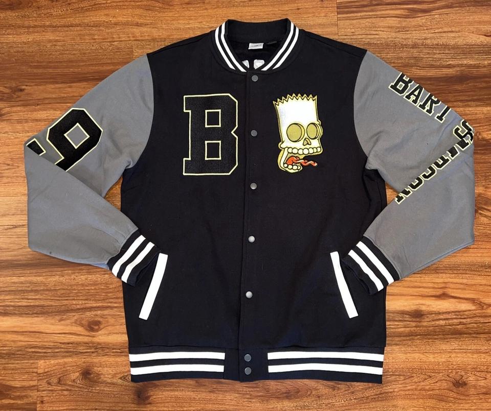 Veste de sport pour homme Bart Simpson, noire et grise, brodée, col montant, logo sur le devant