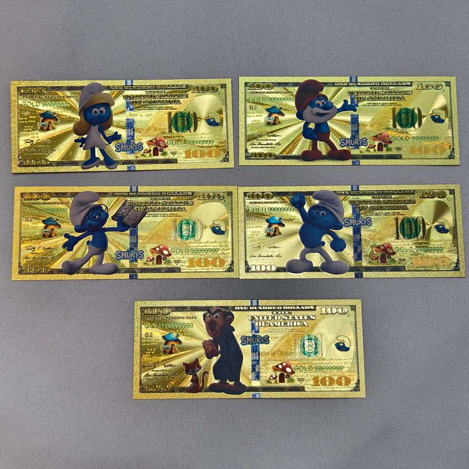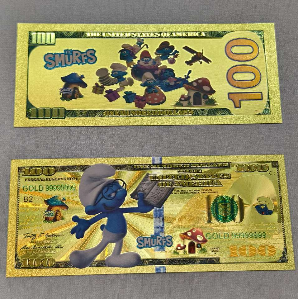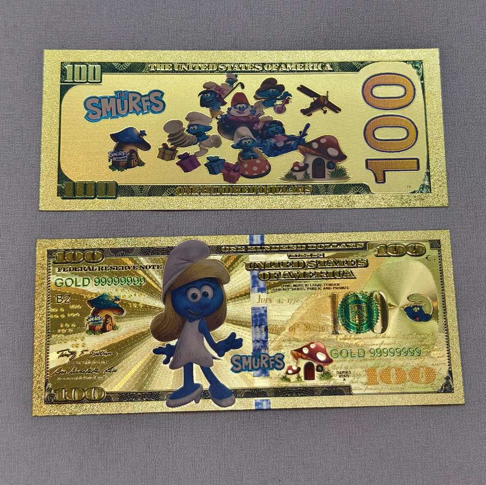 Billet de banque en feuille d'or sur le thème des Smurfs pour cadeau commémoratif, collection ou souvenir