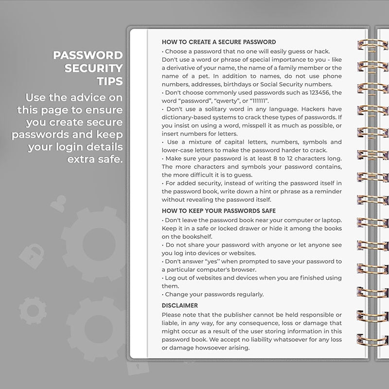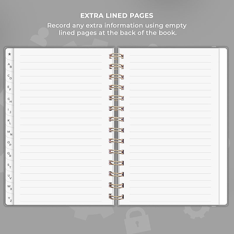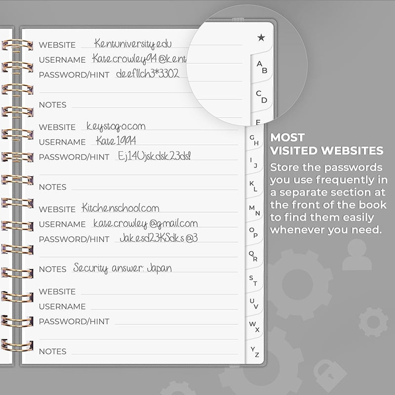 Carnet de mots de passe à spirale avec répertoire classé des adresses Internet, étiquettes de style lettre, carnet de mots de passe