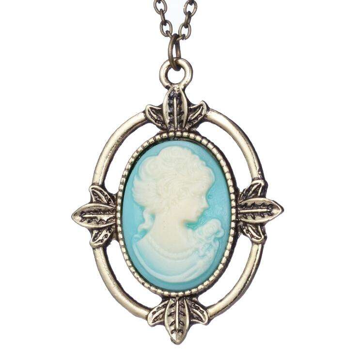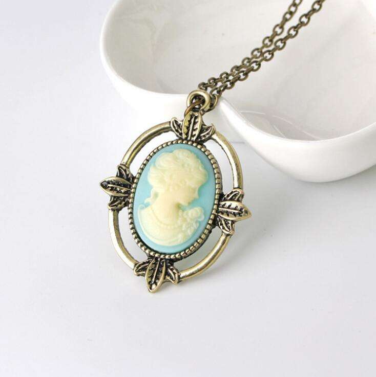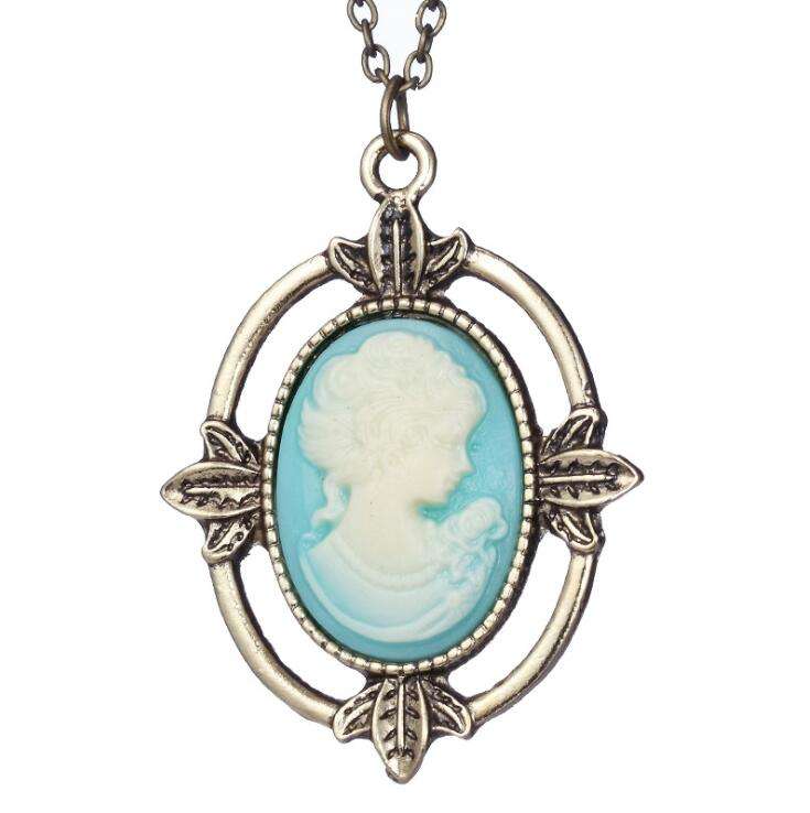 The Vampire Diaries Katherine Head Blue Cameo Vintage Antique Bronze Necklace