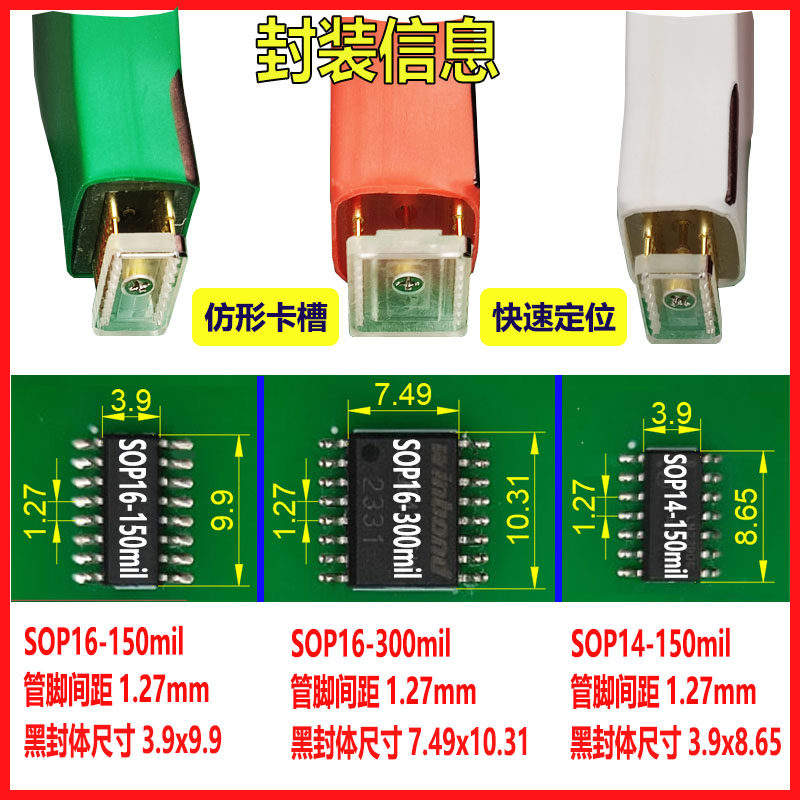 Sonde de test de programmation pour puces SOIC16, SOP16, SOP14, avec aiguille à ressort, sans démontage, et câble de téléchargement à espacement de 1,27 mm