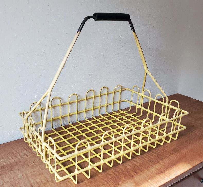 L'image montre un panier en fil métallique, couramment utilisé comme pièce maîtresse décorative pour bol de fruits. Il présente un design ouvert et aéré avec