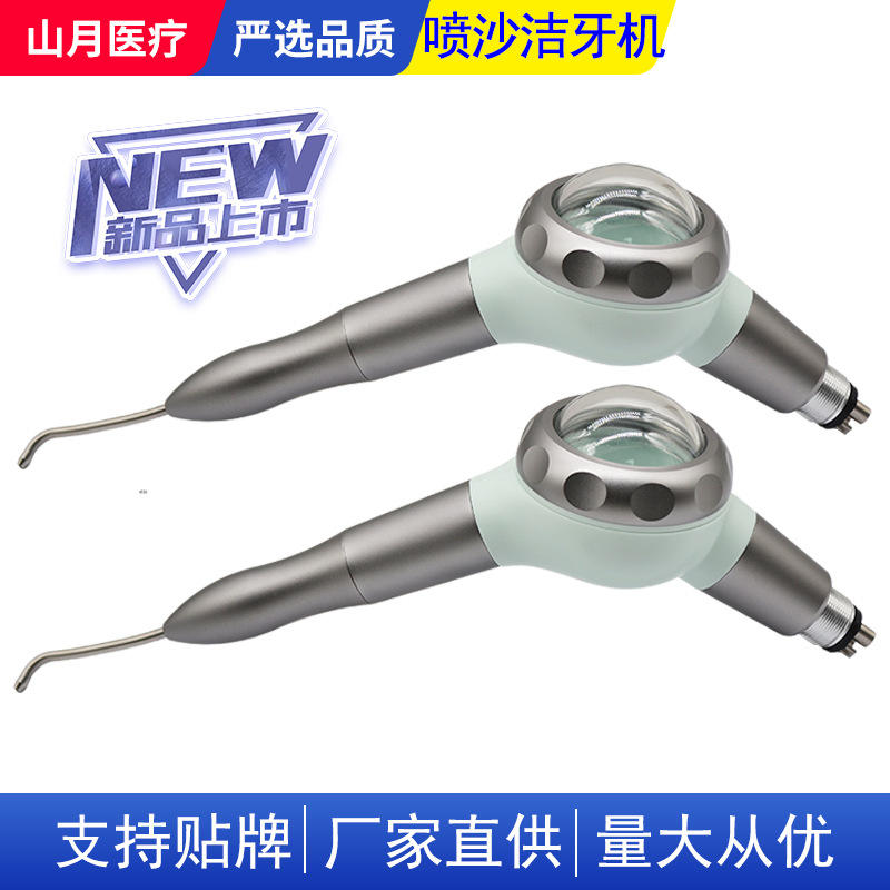 La nouvelle machine de nettoyage dentaire par sablage est puissante et moins sujette aux blocages. Il est doté d'un pistolet de sablage pour usage oral.