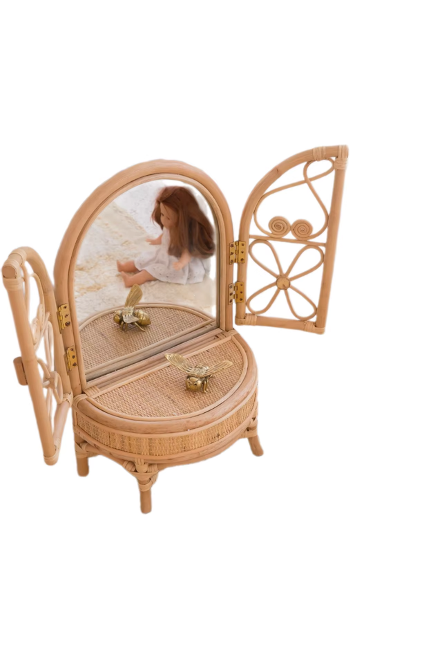 La coiffeuse en rotin, vanité en rotin, vanité enfant, meubles pour enfants, sans danger pour la santé et esthétique, vente en gros.