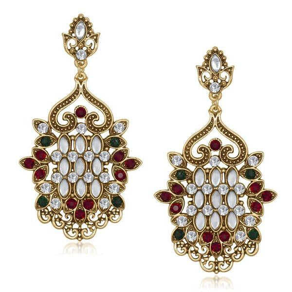 The99jewel Vintage 18K Gold Plated Green Austrian Stone Dangle Earrings White Gold Flower Drop Earrings