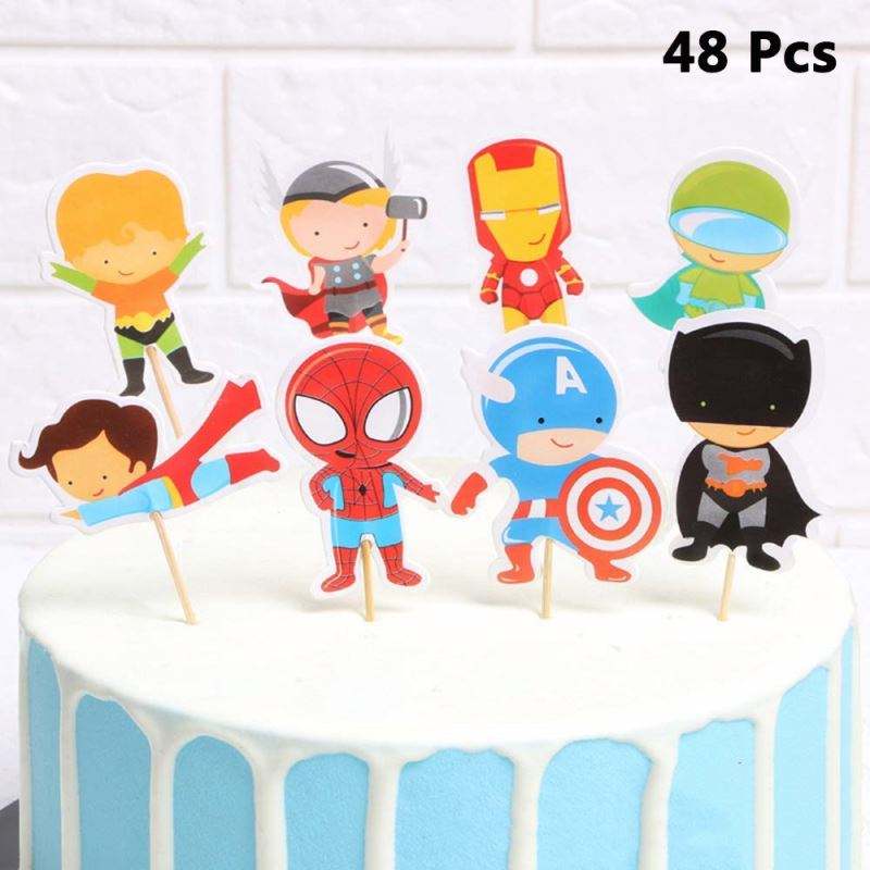 Themed Party Supplies Boys Super Hero Birthday Party Decorations Avenger Toys America Captain Cupcake Toppers N0378