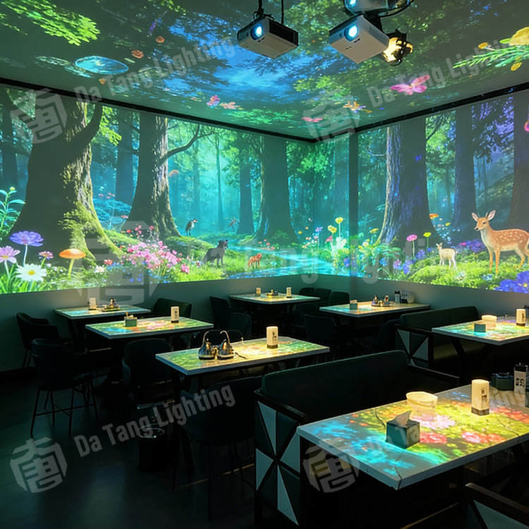 Équipement de projection interactive pour restaurant à thème, pour espace de restauration, avec effets visuels en temps réel et expérience immersive
