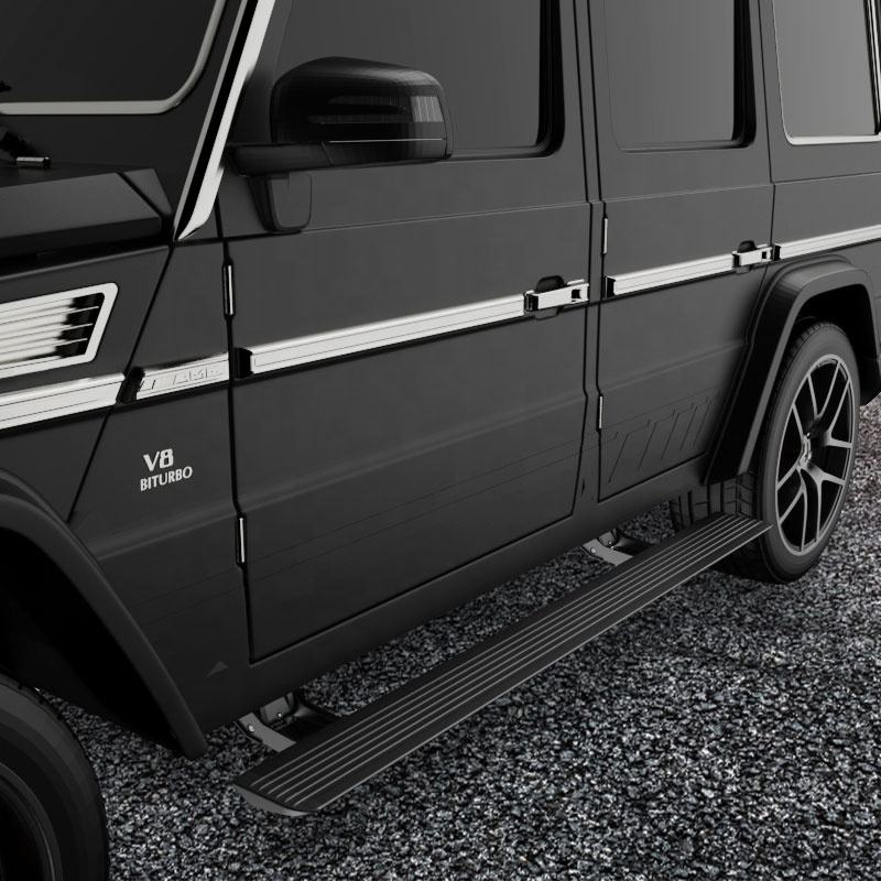 Il y a des marches et des sorties d'échappement latérales sur les marchepieds électriques du véhicule pour Benz G500 G63 marchepied latéral électrique 2019-2023