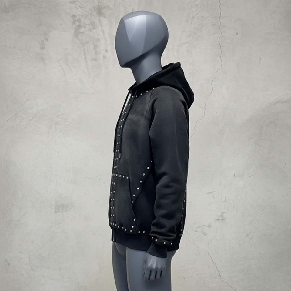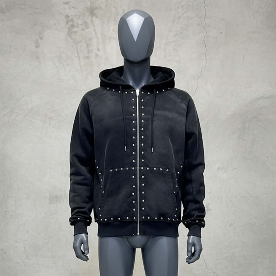 Sweat-shirts pour hommes à fermeture éclair, surdimensionnés, en coton 100 % de haute qualité, 450 GSM, poids lourd, délavés à l'acide, avec logo personnalisé thermique, strass