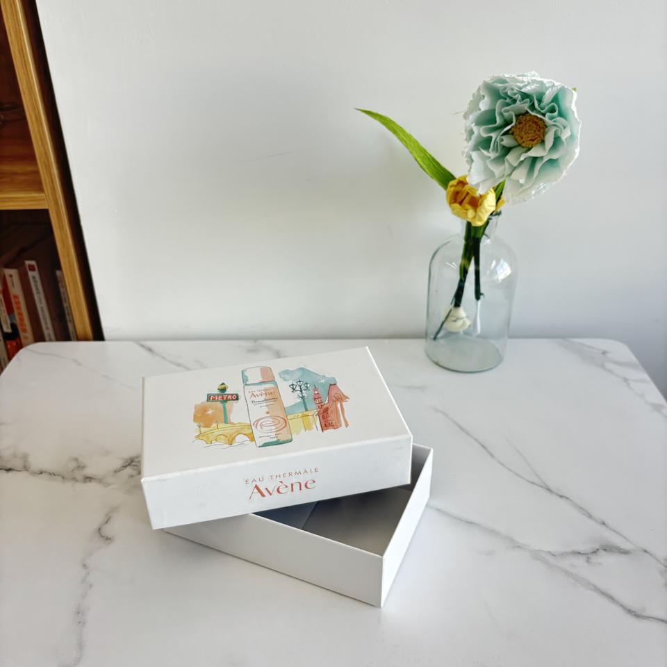 Coffret Cadeau Eau Thermale avec Illustration Parisienne, Emballage Blanc, Coffret Cadeau Élégant pour Produits de Soins de la Peau