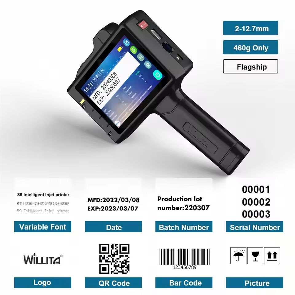 Imprimante à jet d'encre manuelle thermique Tij de 1/2 pouce, nouvelle, portable, alimentée par batterie, écran tactile, pour l'impression sur cuir et la date d'expiration