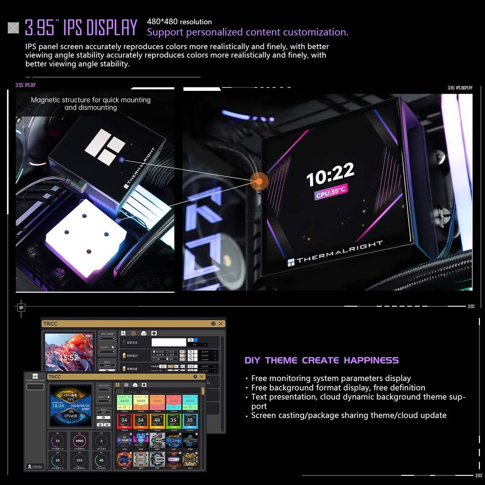 Thermalright Hyper Vision ARGB 360mm CPU Liquid Cooler avec ventilateurs silencieux Liquid Aio Cooler avec écran Lcd 3.9 pouces