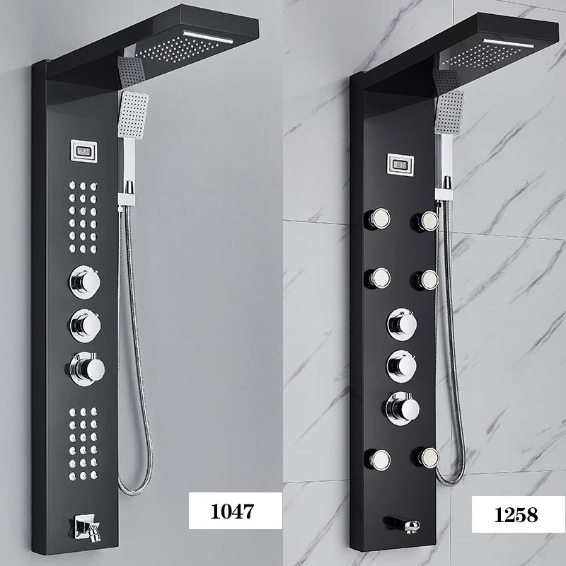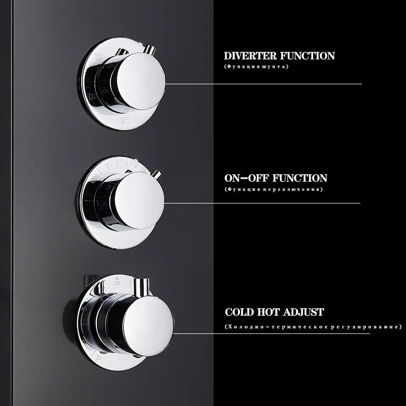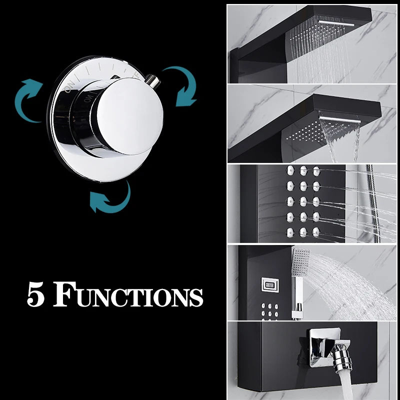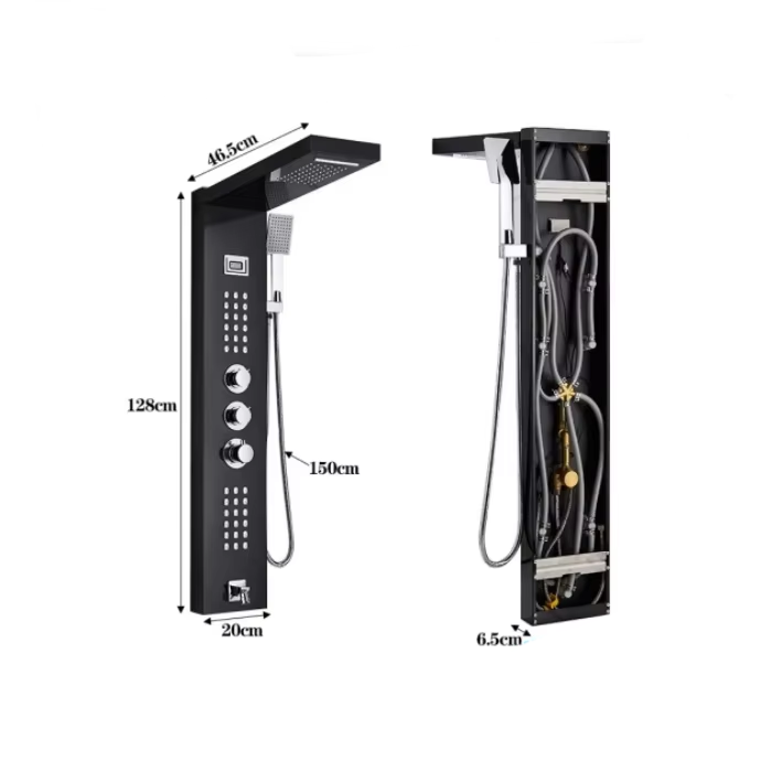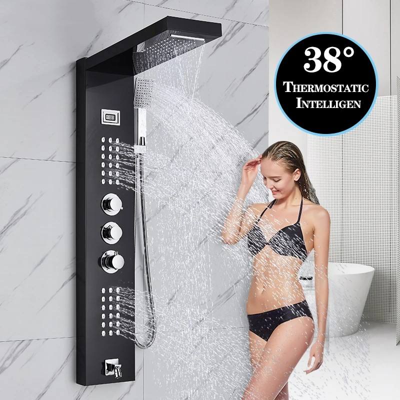 Robinet de Douche Thermostatique Cascade Panneau de Douche Pluie 3 Poignées Colonne Mélangeuse de Douche de Salle de Bains avec Douchette