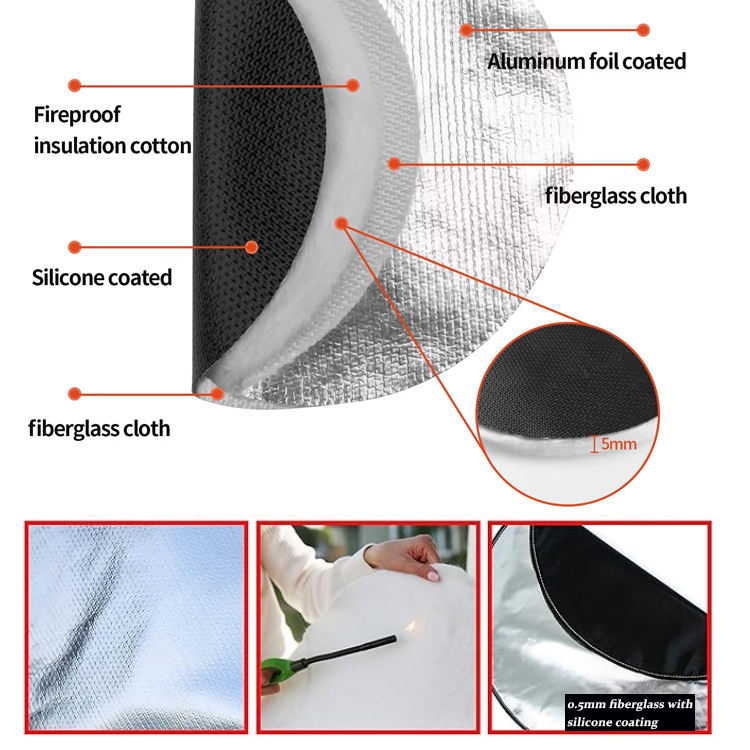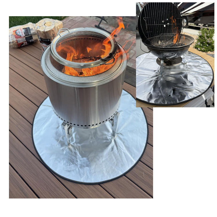Tapis de protection pour foyer extérieur épais, résistant à la chaleur, en aluminium, silicone, fibre de verre et coton