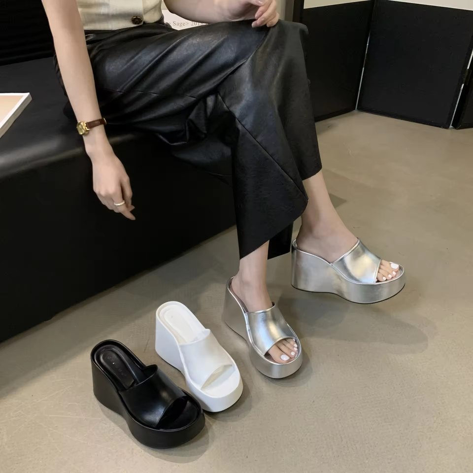 Chaussons à talons hauts à semelle épaisse pour femmes Sandales à talons hauts à bout ouvert Portées à l'extérieur Semelle souple Chaussons pour femmes