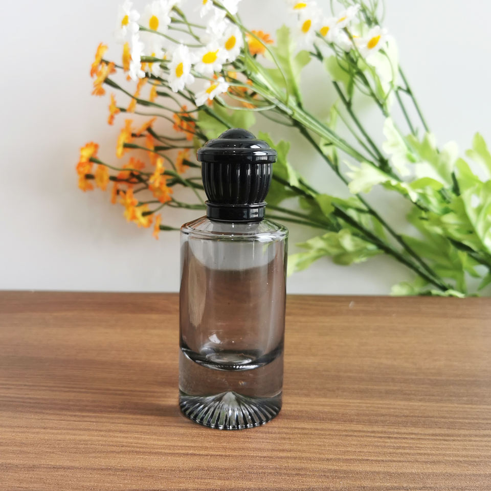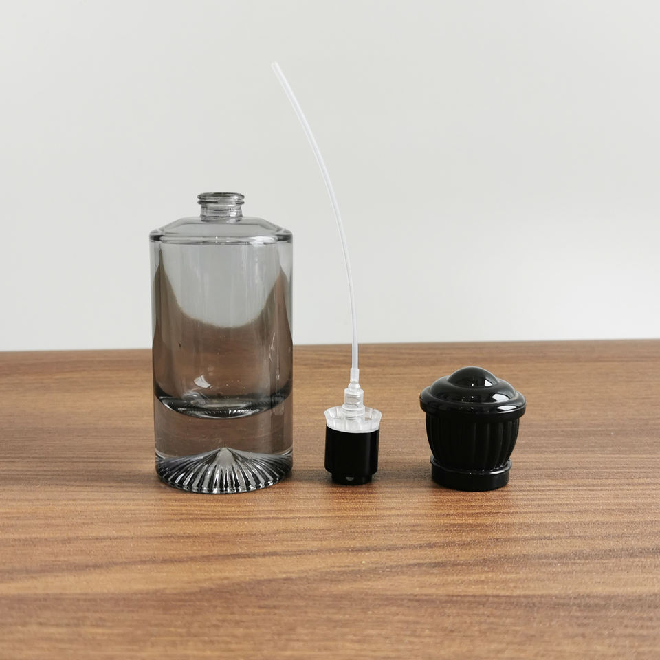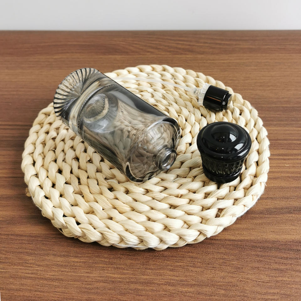 Bouteille cosmétique épaisse à base de volcan 30ml 50ml 100ml Bouteille de parfum en verre de pulvérisation ronde noire
