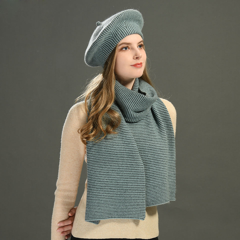 Ensemble bonnet et écharpe en tricot béret en cachemire pour femme