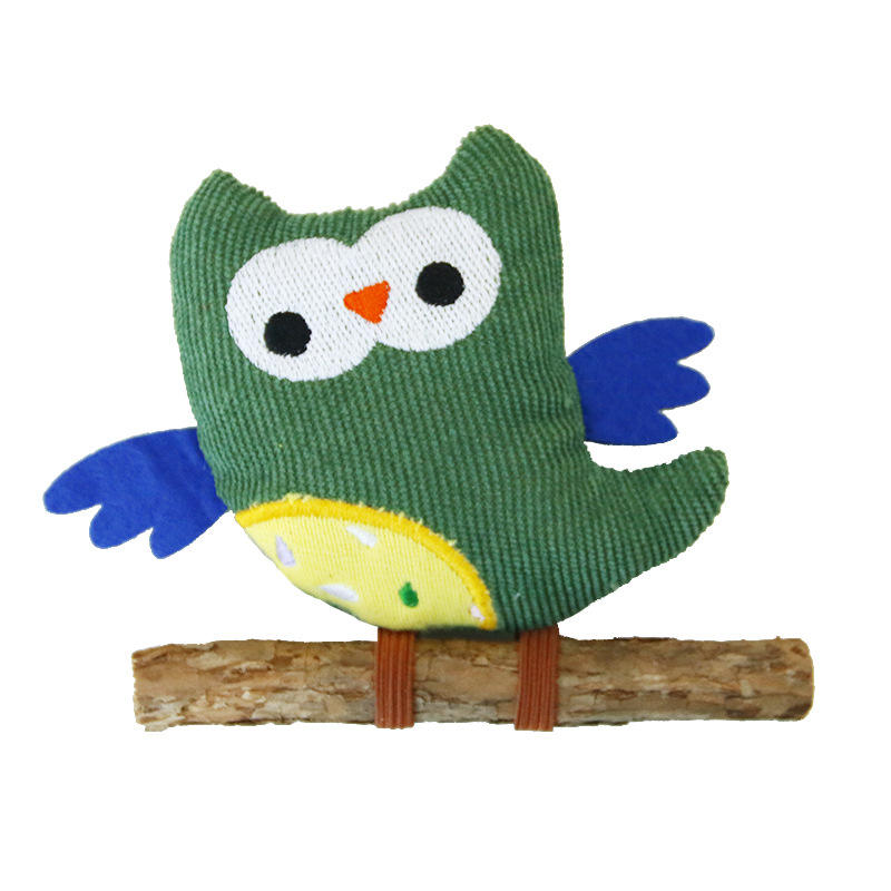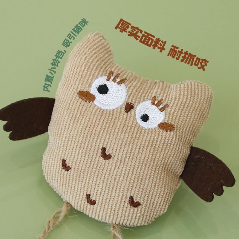 Thick wooden cat toy owl feather bell doll bite resistant pet supplies