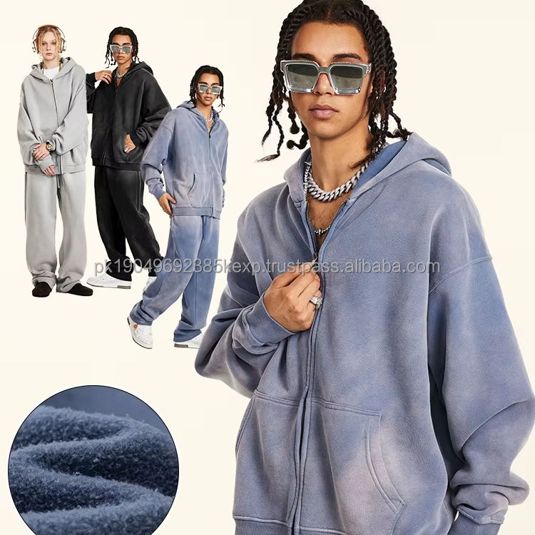 Thicken Fleece Loose Casual Hooded Pull-up Zip Sweater Men's Versatile Jacket Tops Customized Printed Hoodies