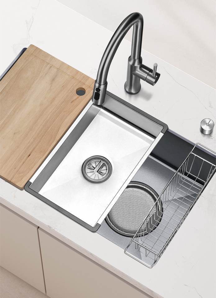 Évier de cuisine sous plan en acier inoxydable 304 épaissi, grande cuve unique, surface nano, facile à nettoyer pour usage domestique