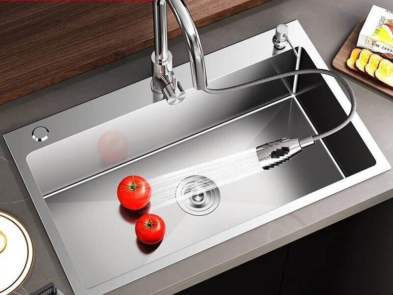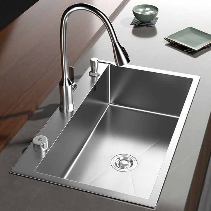 Évier de cuisine encastré à cuve unique en acier inoxydable nano, style japonais, fait main et épaissi
