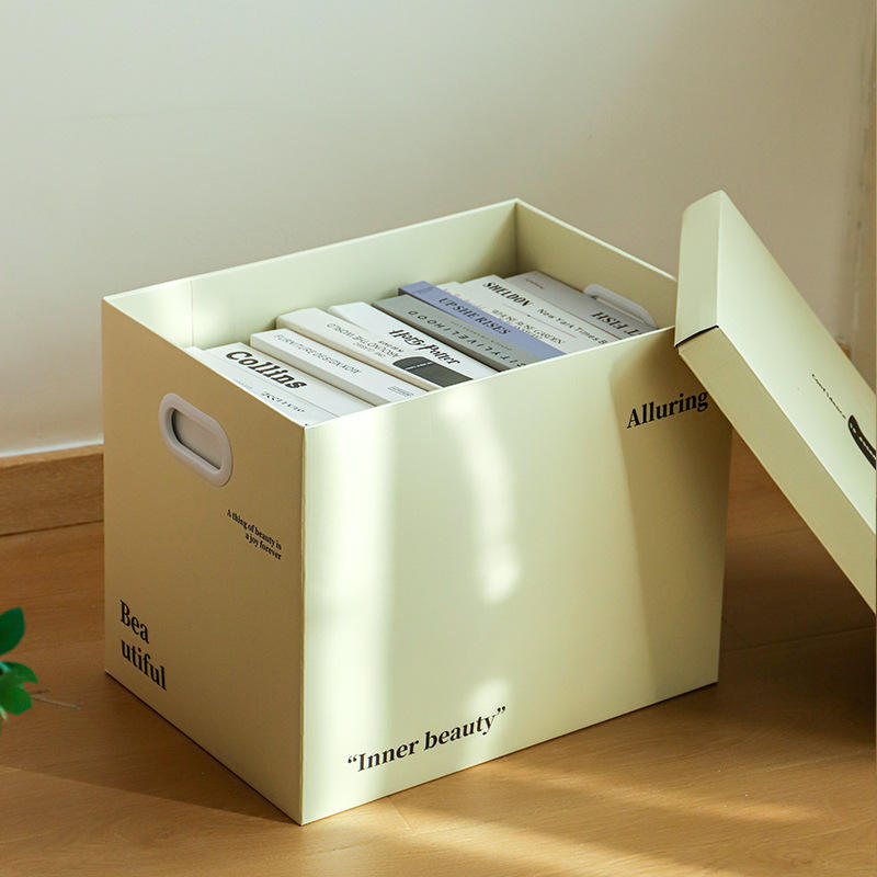 Boîte de rangement en papier épais, organisateur de vêtements rectangulaire avec couvercle pour usage domestique, gris clair, gris foncé, couleur unie