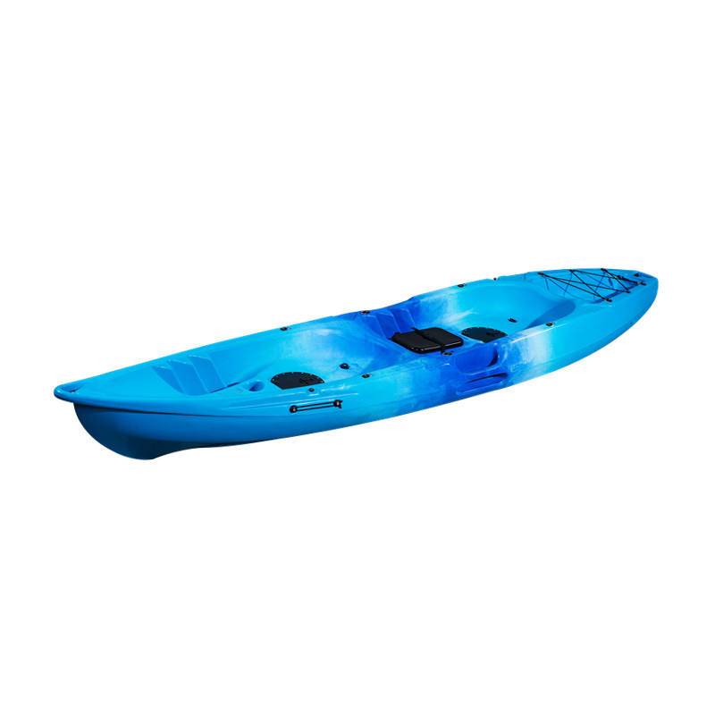 Kayak double en plastique épaissi 4M+ pour la pêche sur les lacs et les rivières, canoë de loisirs durable pour trois personnes avec pagaie, utilisation universelle