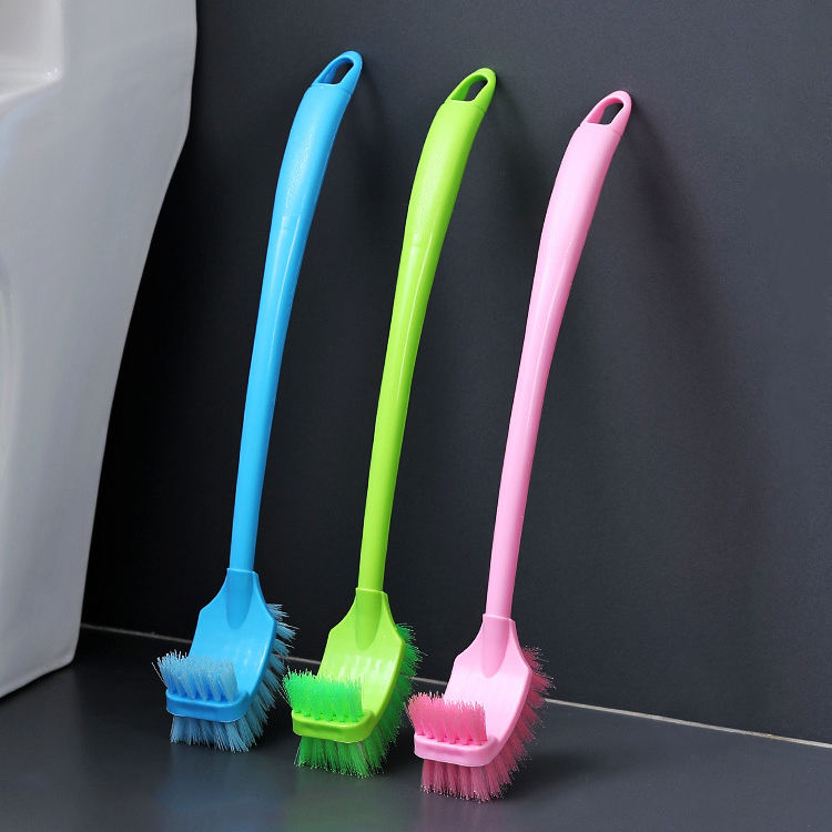Brosse de toilette incurvée à double face en plastique épaissi à long manche