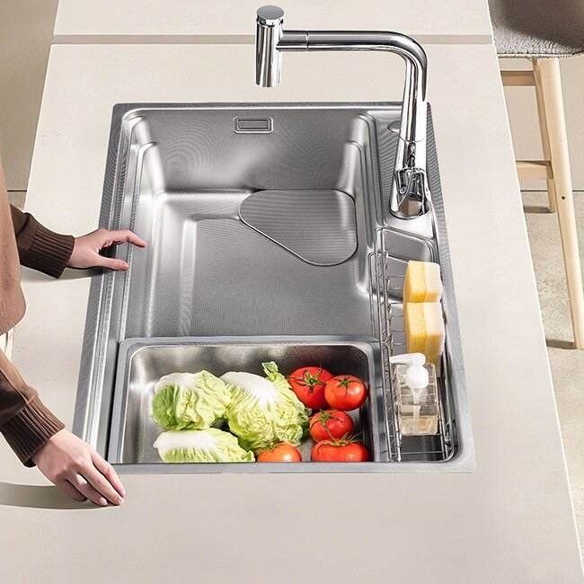 Évier de cuisine encastré Noah Ark JM en acier inoxydable épaissi, grand bac unique, avec filtre anti-débris à motif nano, garantie 1 an