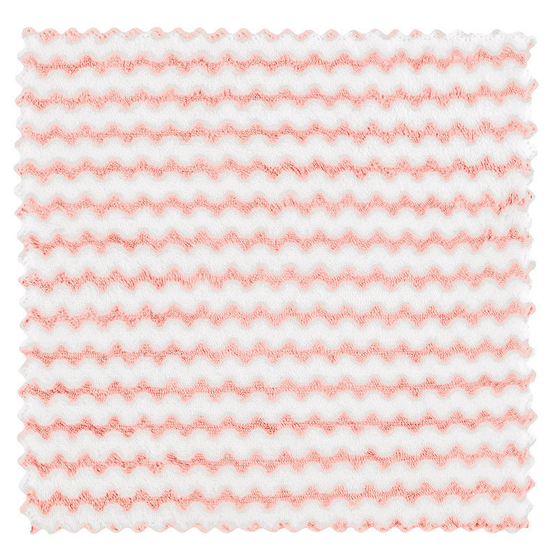 Chiffon de nettoyage de cuisine carré en microfibre épaissie à motif vague d'eau, tampon à récurer anti-adhésif en polaire corail à rayures