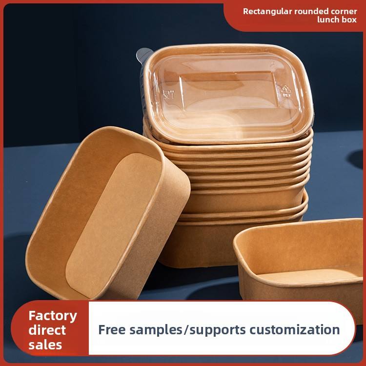 Boîte à lunch en papier d'emballage épais brun rectangulaire coin arrondi boîte à lunch à emporter bol en papier jetable de restauration rapide
