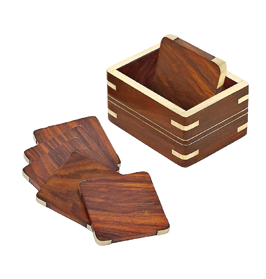 Sous-verres carrés en bois épais avec support – Accessoires de cuisine de qualité supérieure