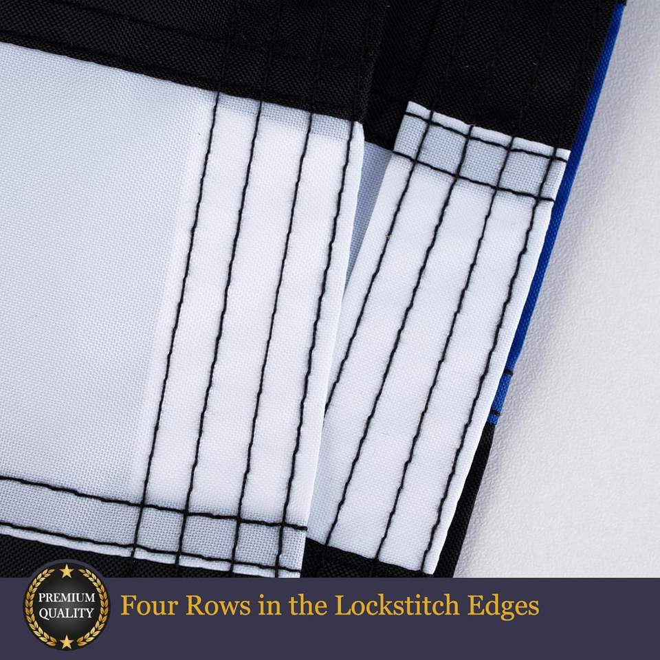 Drapeaux Thin Blue Line 3x5 en polyester imperméable pour extérieur, étoiles brodées, robustes, bannière à rayures « Back the Blue Lives Matter »