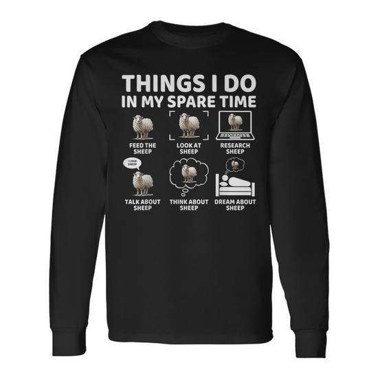Les choses que je fais dans mon temps libre, T-shirt à manches longues pour amoureux des moutons et agriculteurs
