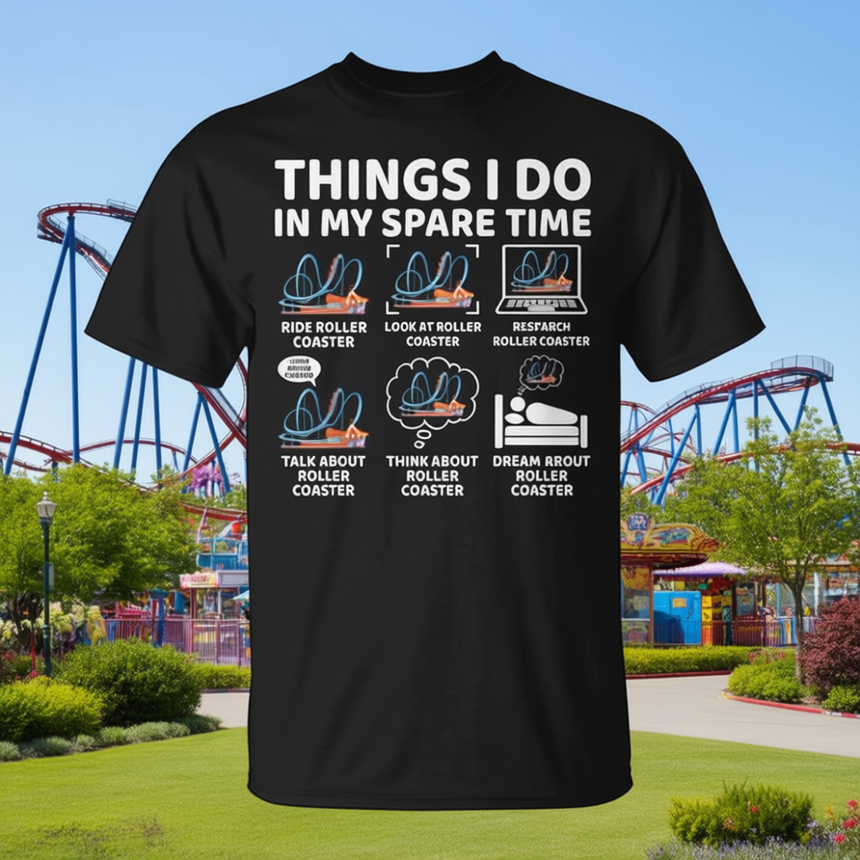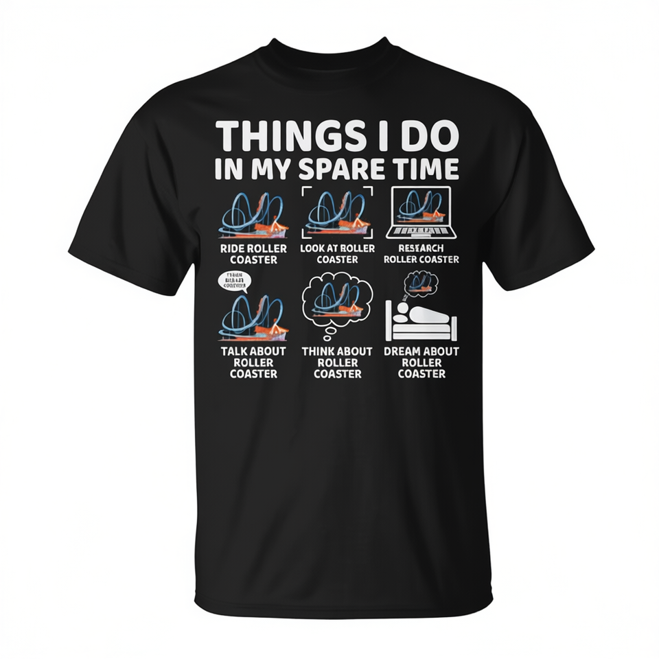 T-shirt unisexe à manches courtes et col rond pour adulte, avec impression numérique, « Things I Do In My Spare Time Roller Coaster Lover »