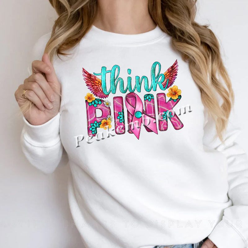 Pensez ruban rose DTF transfert Film impression lutte contre le cancer du sein transfert de feuille de vinyle pour les vêtements