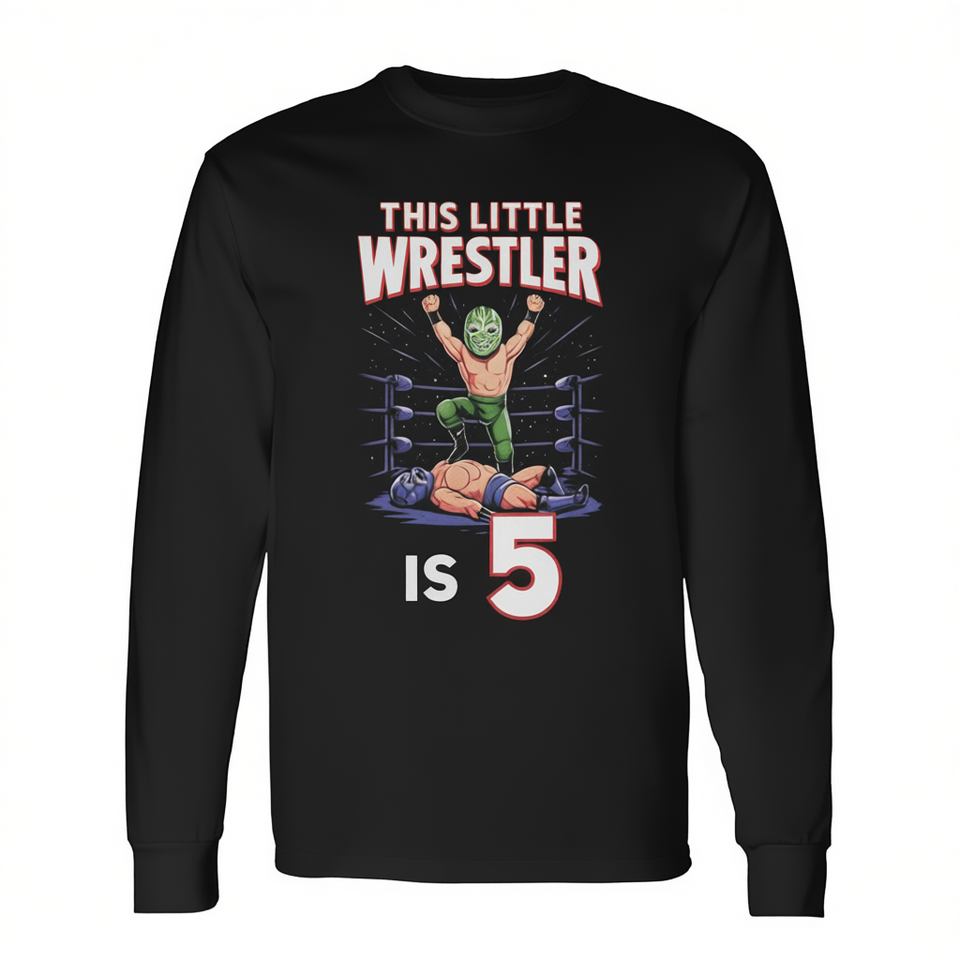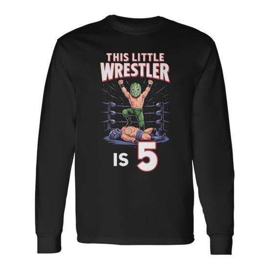 T-shirt à manches longues pour fête d'anniversaire de 5 ans « This Little Wrestler Is 5 », promotionnel pour les fans de lutte