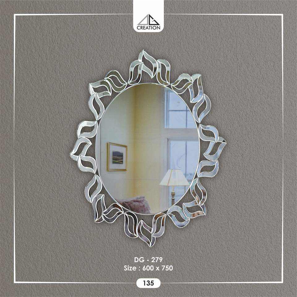 Cette pièce décorative présente un cadre artistique unique composé de nombreux segments de miroir de formes individuelles plus petites.