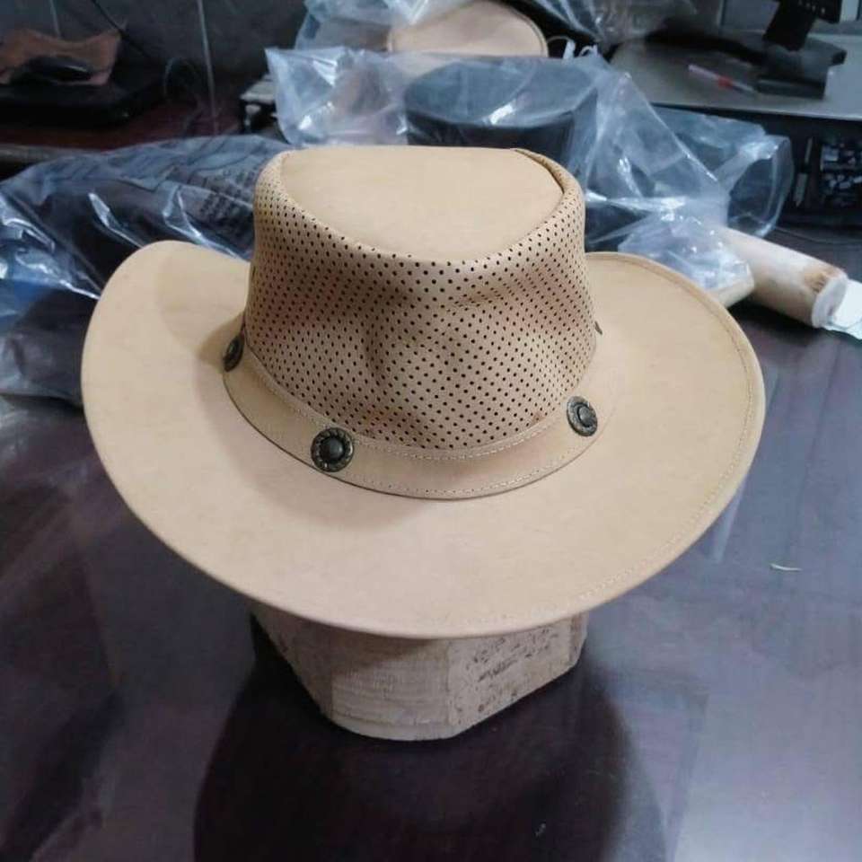 Ceci est un chapeau haut de forme steampunk en cuir de vachette.