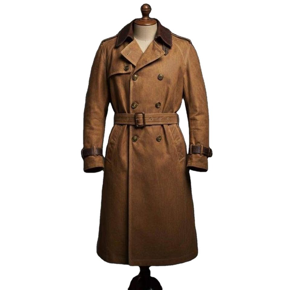 C'est une veste aviateur en cuir avec col en fourrure Veste en cuir Manteau trench en cuir marron à double boutonnage