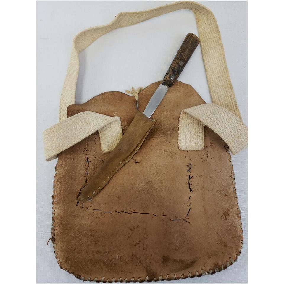 This is a reproduction Gargoussier or colonial French cartridge box It is a historical used during the French & Indian period