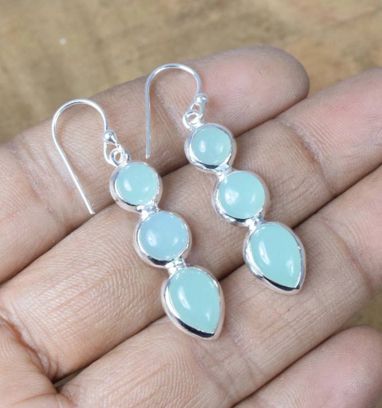 Product Name:Natural Aqua Chalcedony Gemstone Silver Earrings
