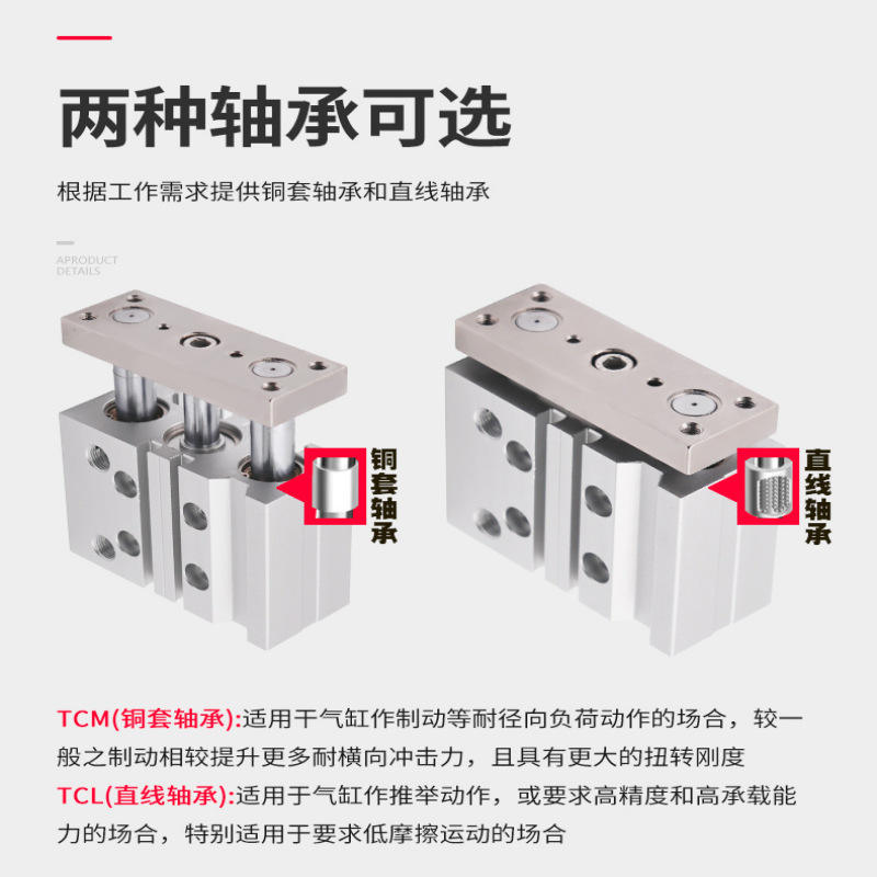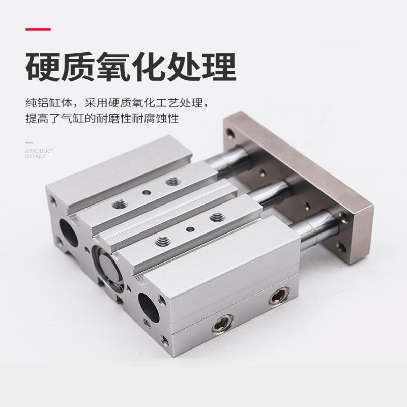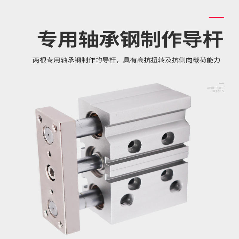 Cylindre à tiges de guidage à trois axes 12 16 20 25 32 40 50 63 mm, corps en aluminium anodisé dur, double action avec roulements à billes